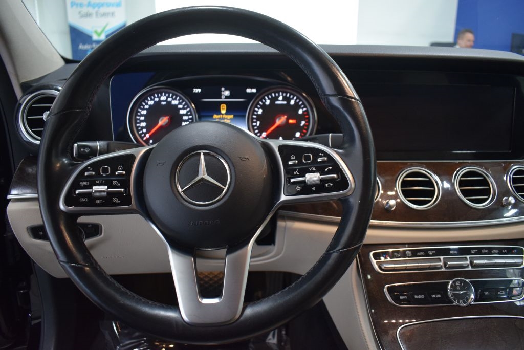 Clean and well-maintained 2019 Mercedes-Benz E-Class E 300 4MATIC, non-smoker with no accidents reported and solid service history. This luxury sedan comes well-equipped with the Sport Package featuring AMG body styling, Mercedes-Benz star in the grille, sport interior, and lowered suspension with selective damping. Finished in sleek Black with elegant Brown Ash Wood Trim and a Macchiato Beige headliner, it exudes sophistication inside and out. Loaded with the Premium 1 Package, including electric trunk closer, Hands-Free Access, NFC wireless charging, Keyless Go, and a Burmester Surround Sound System with 13 high-performance speakers, 590 watts, and advanced audio optimization. Additional highlights include SiriusXM Radio, Blind Spot Assist, heated front seats, and a heated steering wheel for all-season comfort.