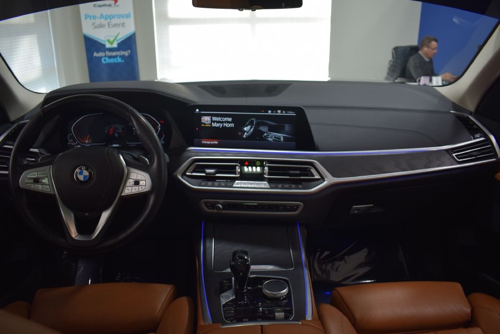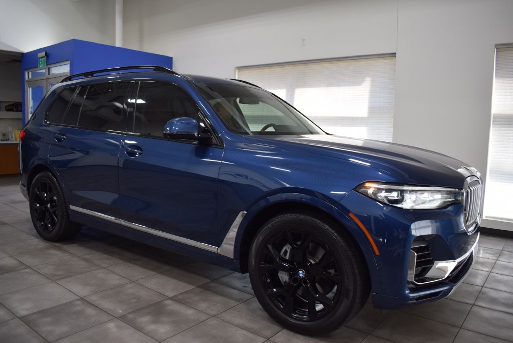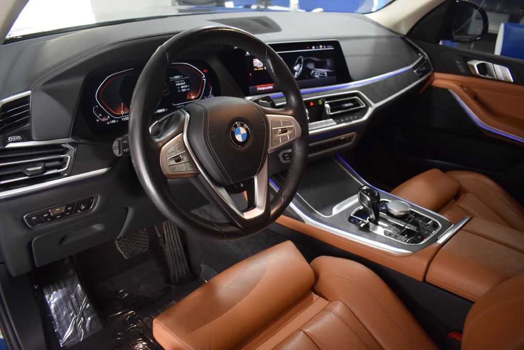 For sale: 2021 BMW X7 xDrive40i, a pristine, non-smoker, no-accident, one-owner, prior Certified Pre-Owned SUV with impeccable service history. Dressed in striking Phytonic Blue Metallic with luxurious Cognac Vernasca Leather Upholstery and Ash Grain Black with Matte Bronze Effect Wood Trim, this X7 is loaded with premium features: Parking Assistance Package with Drive Recorder, Surround View with 3D View, Rear View Camera, and Parking Assistant Plus; Cold Weather Package with 5-Zone Automatic Climate Control and Front and Rear Heated Seats; plus a Trailer Hitch, Shadowline Exterior Trim, and High-Gloss Shadowline Roof Rails. Spacious, powerful, and sophisticated, this X7 xDrive40i is the ultimate blend of luxury and versatility!